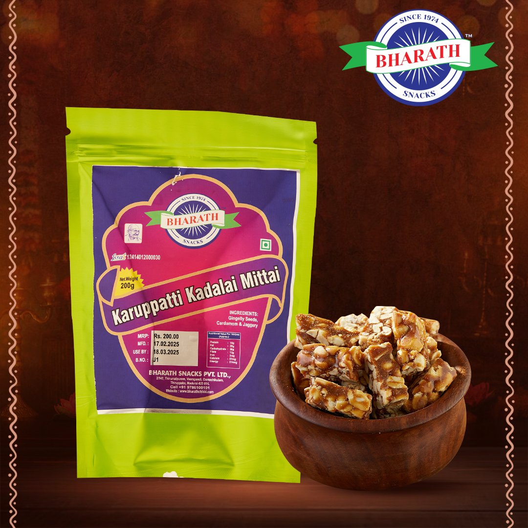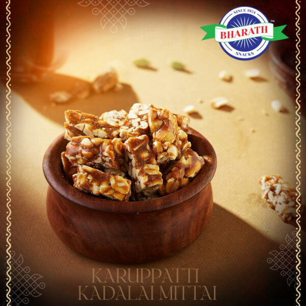 “From our kitchen to your heart” – At Bharath Snacks, we follow traditional Tamil recipes that have nourished families for generations. Every Karuppatti Kadalai Mittai is made with the same care and authentic techniques that our grandmothers used. Premium ingredients, time-tested methods, and lots of love – that’s our promise to you.